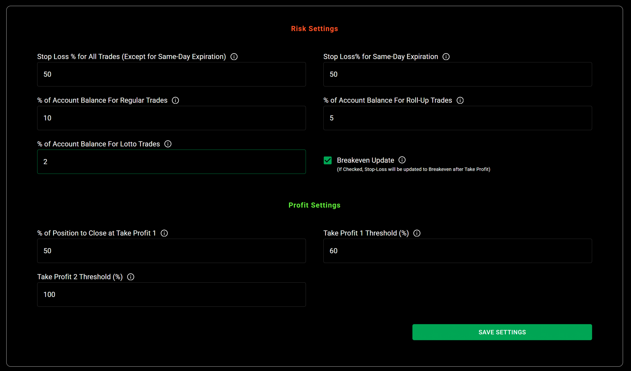 The Risk Management Bot simplifies option trading by automating key aspects, such as position sizing, take profits, and stop losses. It removes emotional biases, enhances consistency, and provides a customizable approach to risk management. By using this bot, you can trade with precision and confidence, ultimately increasing your chances of success in the complex world of option trading